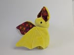 Small plush bat, yellow with firework pattern. Safety Eyes (~10 inch wingspan, ~4 inches tall)